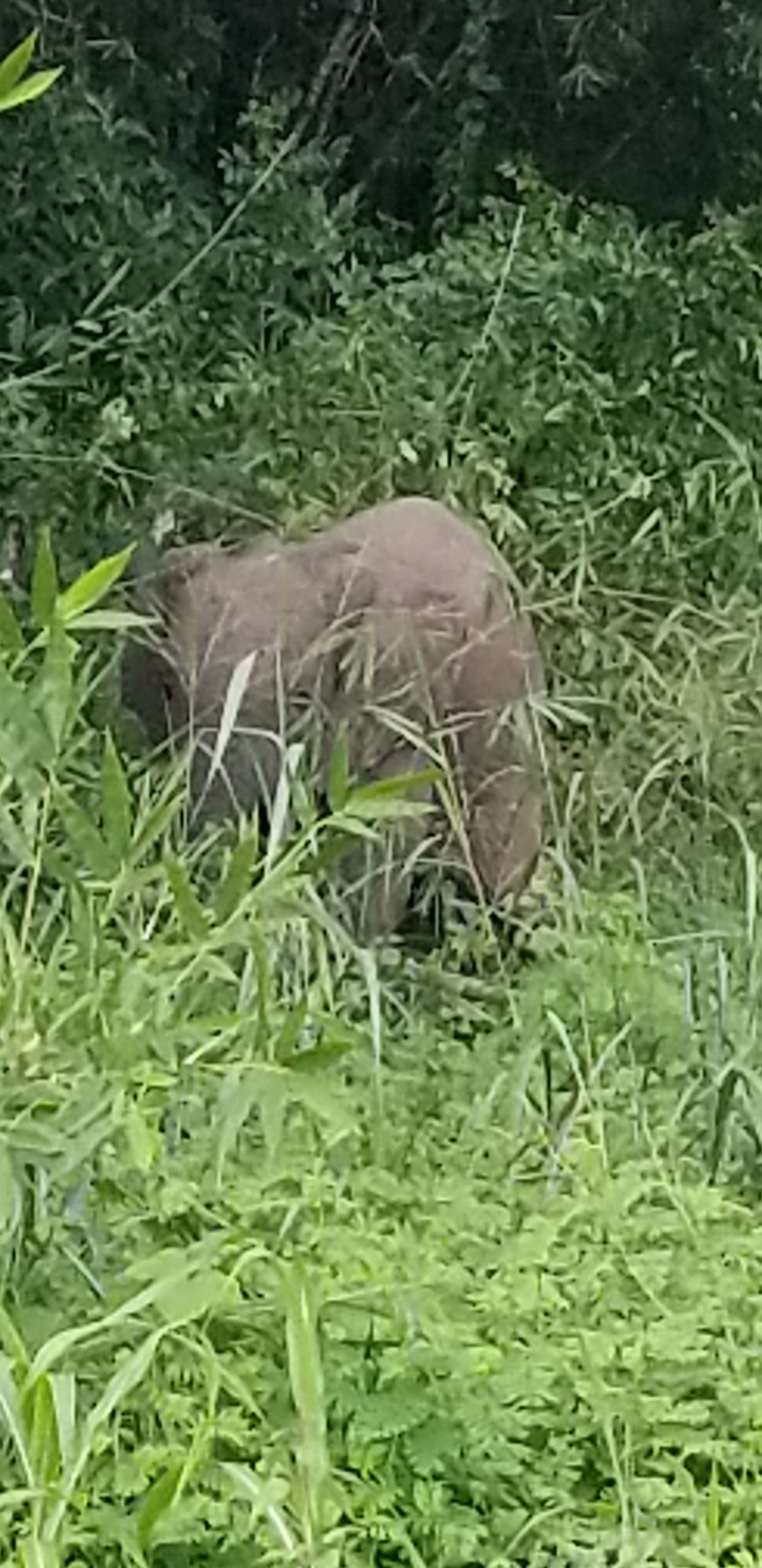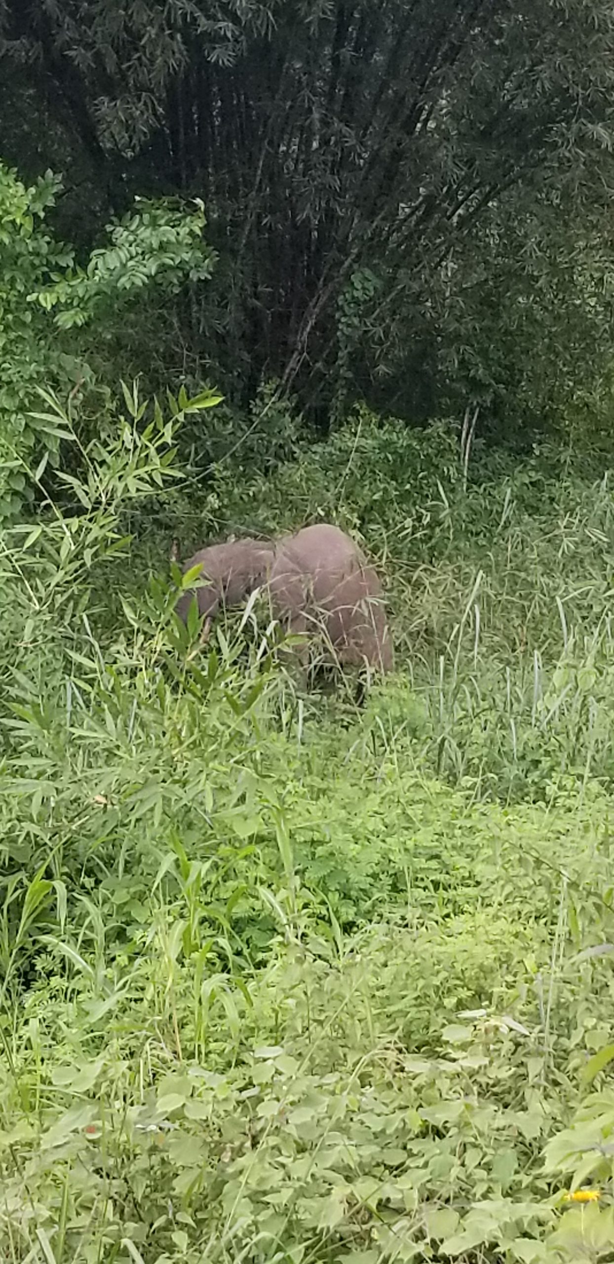 Le lendemain, nous avons profité de farniente autour de la piscine, car la chaleur de la saison des pluies est bien là. Nous sommes repartis en début d’après-midi et avons fait quelques stops le long de la route pour acheter fruits et légumes frais. Et une surprise magique a ponctué notre retour vers Pointe Noire, puisque nous avons été alertés par des personnes le long de la route, car il y a avait un éléphant qui mangeait ! Nous nous sommes garés en vitesse au bord de la route, nous avons réveillé Rémi qui faisait sa sieste et nous avons profité de ce spectacle exceptionnel…Ces éléphants sont d’habitude peu vus par les humains, car ils vivent reculés dans la forêt, de nombreux amis n’ont jamais réussi à les voir, même en partant plusieurs jours sur leurs traces…donc nous étions aux anges de pouvoir le voir de si près !!! Il nous regardait, puis il mangeait…la pluie nous a fait rentrer dans nos voitures, et lui s ‘est éloigné dans les bambous…